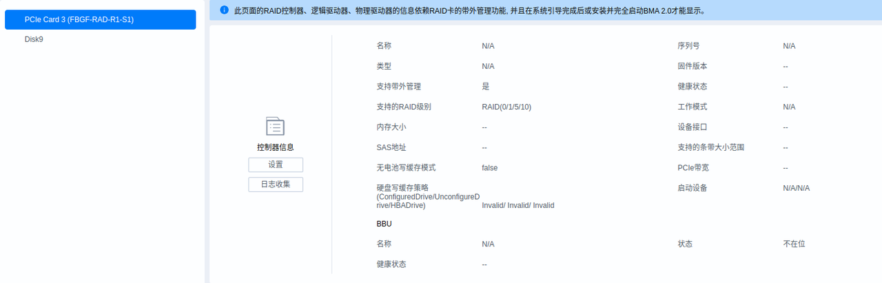 RAID卡无信息,即存储管理界面识别到了RAID卡,但是没有获取到RAID卡信息及其下接硬盘信息