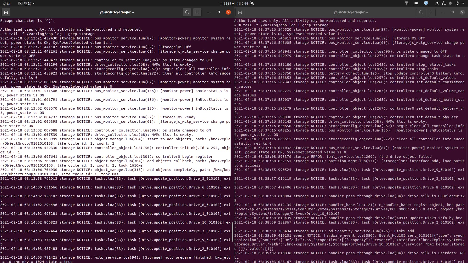 下图左边为正常日志,右边是raid无信息时的日志