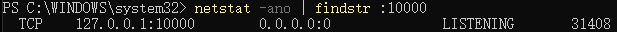 netstat -ano | findstr :10000