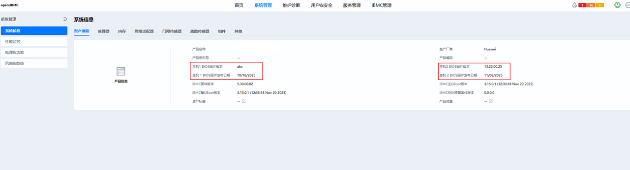 评审点二:系统管理->系统信息->资产摘要适配双主机bios版本显示