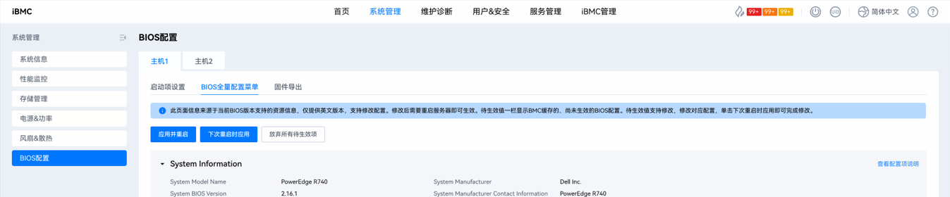 首页->设备信息适配双主机bios版本显示系统管理->系统信息->资产摘要适配双主机bios版本显示系统管理->BIOS配置适配双主机bios配置功能实现