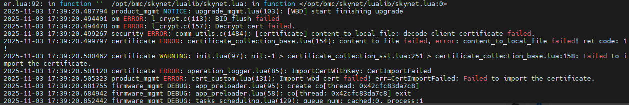 11-24 17:28:38之前的日志不用管,之前有操作证书导入,有异常操作,白牌包中的证书时web验证可以导入且经过openssl加密的