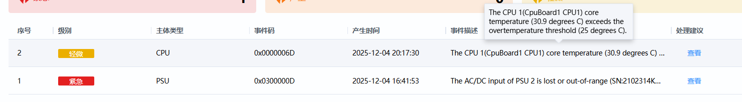 把CPU的轻微和严重门上限值改低,BMC上记录CPU温度告警日志,但是mngment health还是0x8000。请再帮忙看看,谢谢!