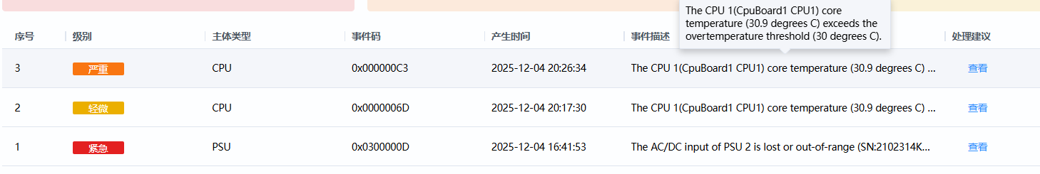 Mngmnt Health 传感器的事件产生和状态变化,是由于传感器硬件访问异常,与触发超出门限的告警无关,请知。