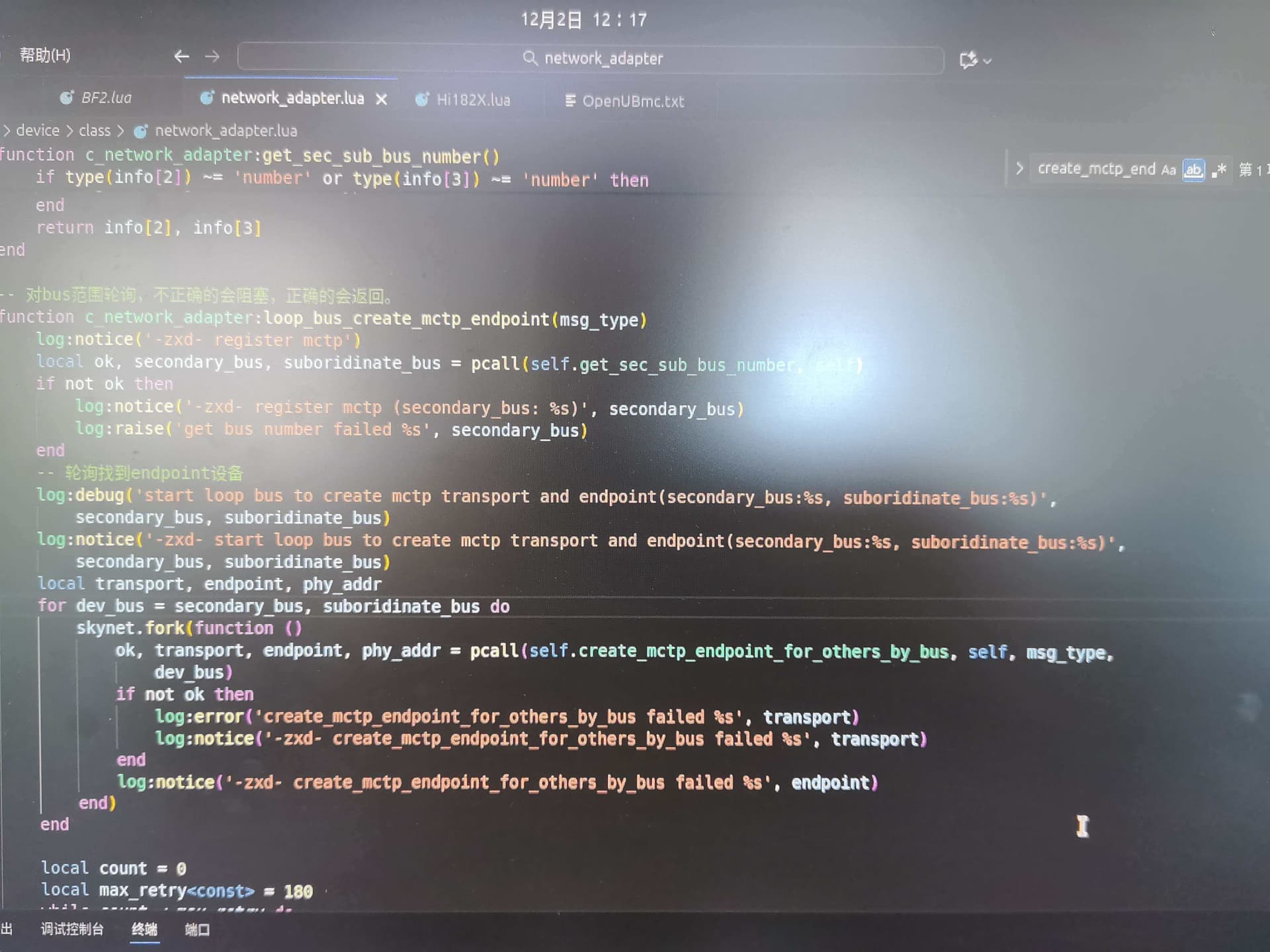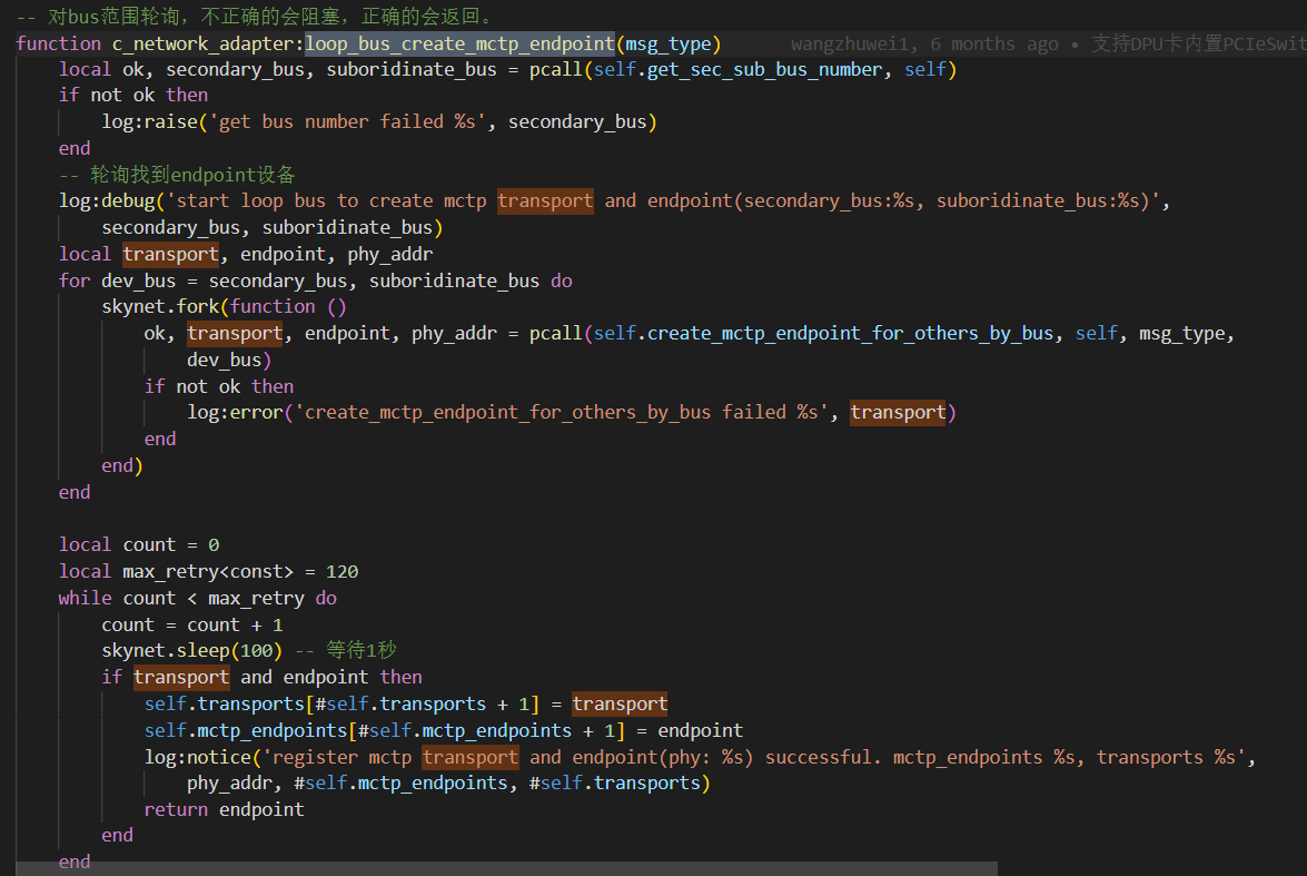 查看一下app日志,是否有报错。并且加下日志确定下是获取ep处卡住了吗?network_adapter相关函数loop_bus_create_mctp_endpoint