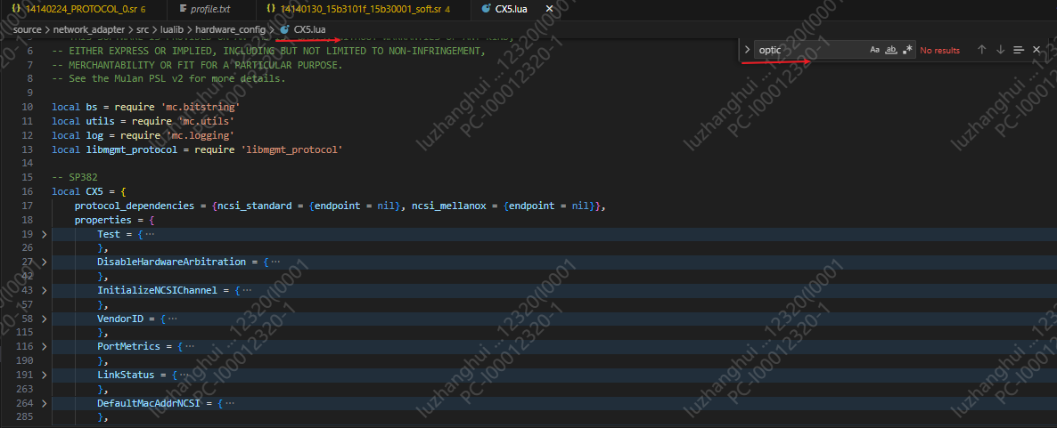 这就导致MCX631102AN-ADAT并没有光模块对应的协议配置,从而无法获取到光模块信息和温度。