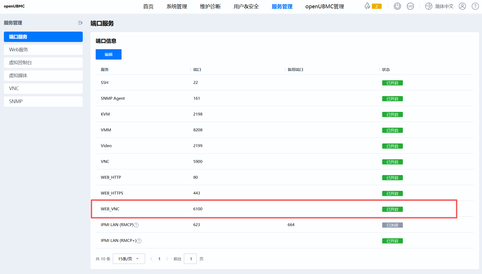 端口服务页面中新增WEB_VNC服务,默认端口为6100