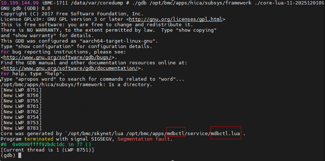 只是看环境上解析出来,是这个模块的coredump;看coredump产生时间,当时应该没有使用mdbctl,像是某个轮询任务触发的,具体触发原因有待分析