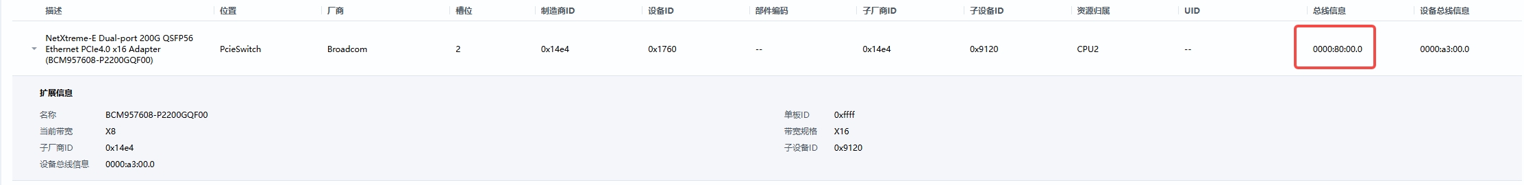 2个博通200G网卡(2和11槽位)在web界面的网络适配器和pcie卡界面总线信息显示不一致问题,之前已发过类似贴: