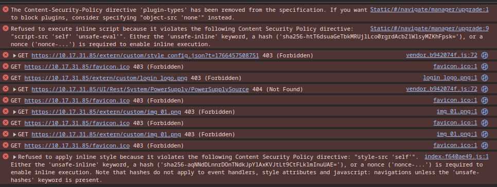 2025-12-19 17:42:24.709164 general_hardware ERROR: smc_interface.lua(449): SMC read (vrd dump len) fail, error:BMC.Error.Unknow: ./opt/bmc/libmc/lualib/mc/context.lua:185: ./opt/bmc/libmc/lualib/sd_bus/init.lua:117: ./opt/bmc/apps/hwproxy/lualib/hwproxy_objects/app_bus.lua:104: ...bmc/apps/hwproxy/lualib/hwproxy_objects/work_objects.lua:74: chip: Smc_CpuBrdSMC_0101, bus: I2c_1, read failed: smc.lua:89: request error, opcode not supported, SMC completion code: 1