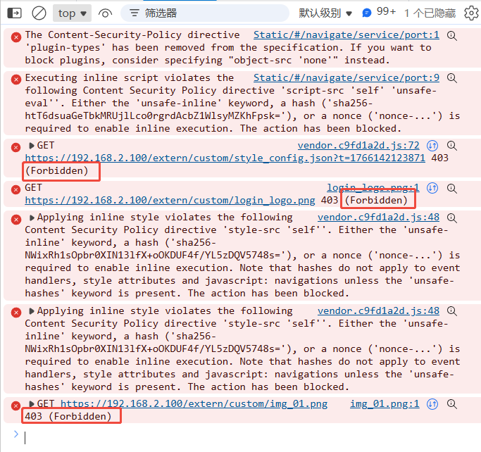 F12进入开发者模式,可以看到显示对应的接口显示forbiddan