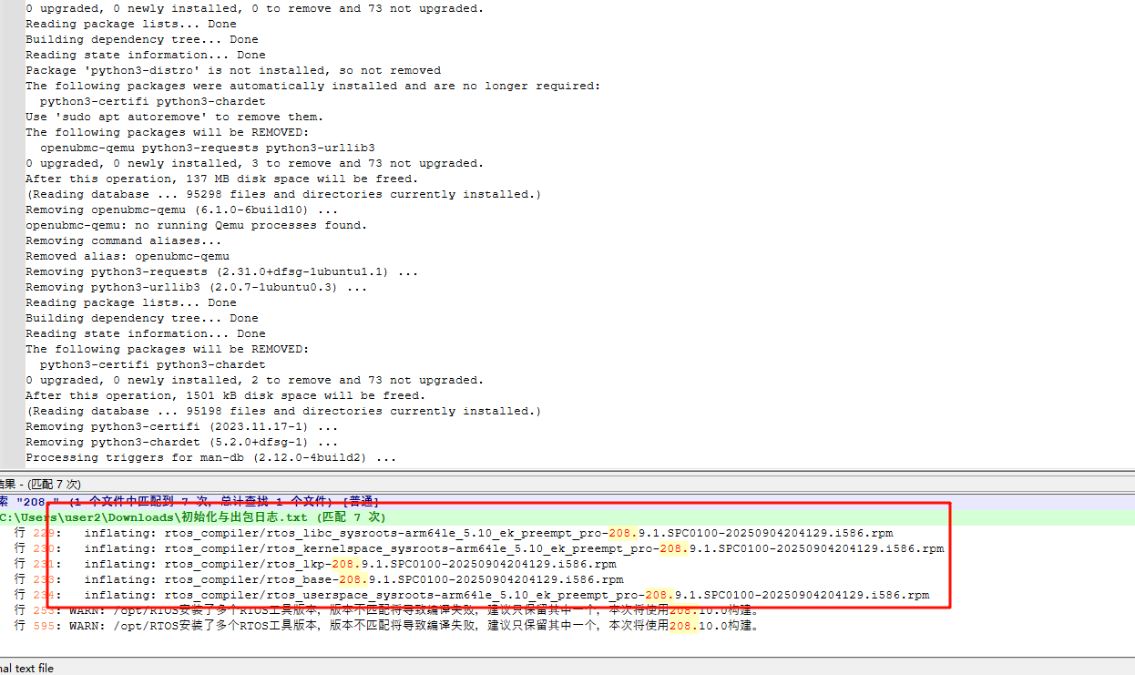 WARN: /opt/RTOS安装了多个RTOS工具版本,版本不匹配将导致编译失败,建议只保留其中一个,本次将使用208.10.0构建。