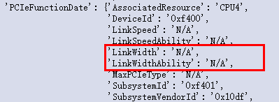 PCIEFunctionDate)中的关键带宽参数均为 "N/A"
