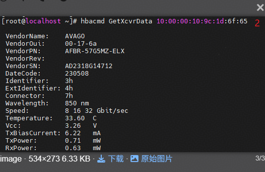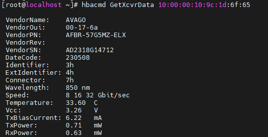 hbacmd 工具,或该工具未正确解析 SFP+ 模块的 EEPROM 数据(特别是温度、电压、功率等模拟量),将导致: