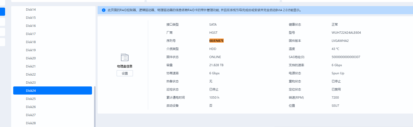 | 1 | 确认 HddBackplane.StartSlot=24 生效 |