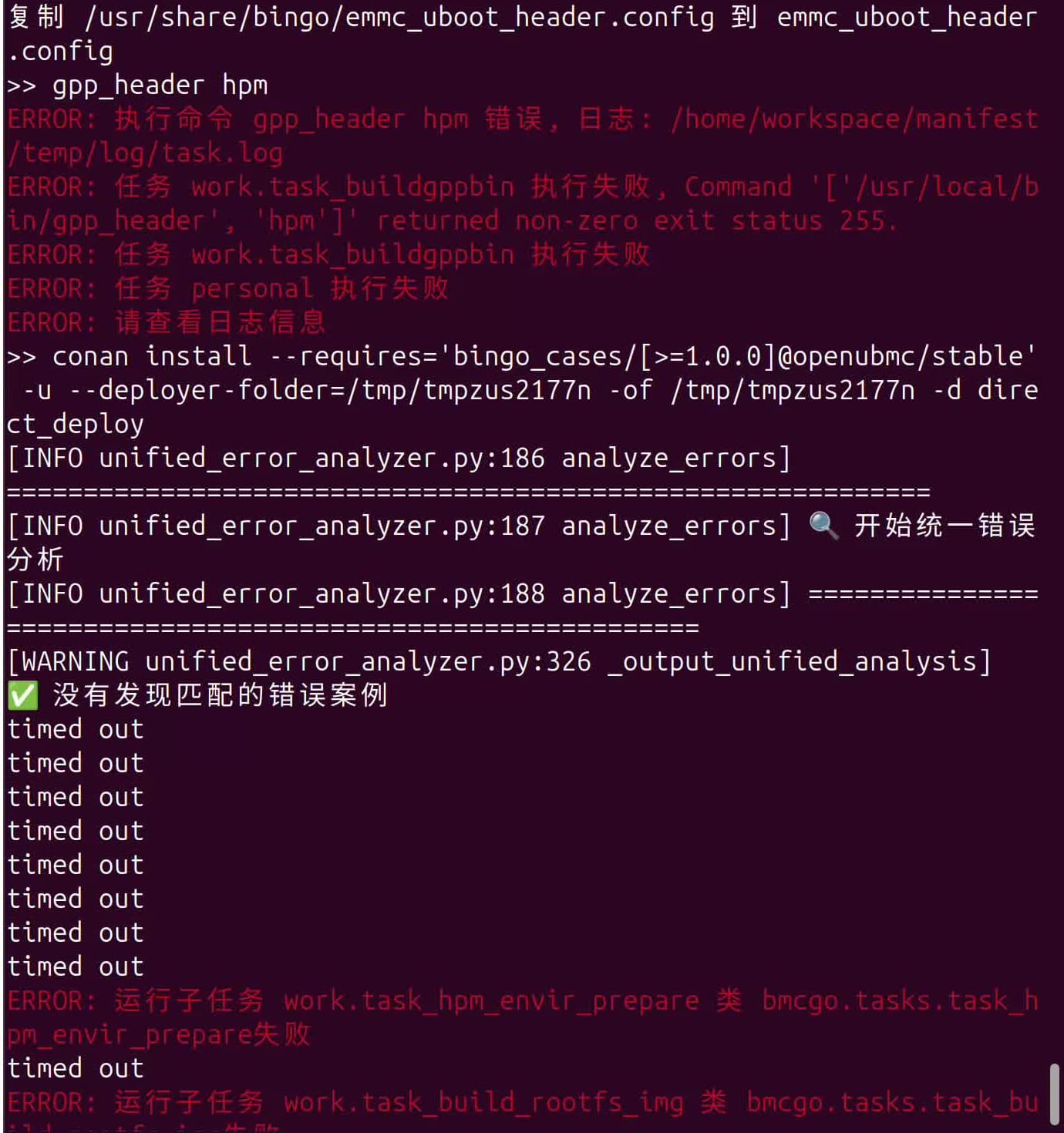 但是使用bingo build -b openUBMC -r openubmc_dev出包,报错如下: