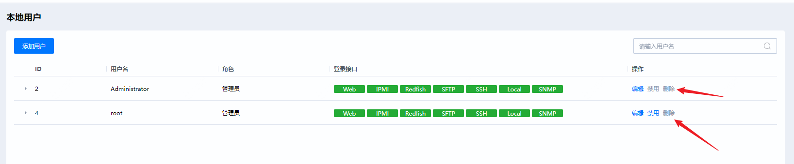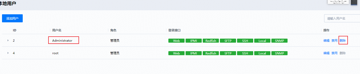 3、用户名为root的管理员不能被删除,可能是紧急用户,可能是trapv3用户