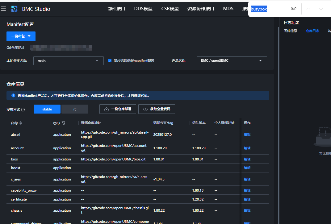 - 即使使用本地路径,BMC Studio 在执行“一键仓库部署”或“同步远程manifest”时仍需 Git 操作拉取其余子仓代码。