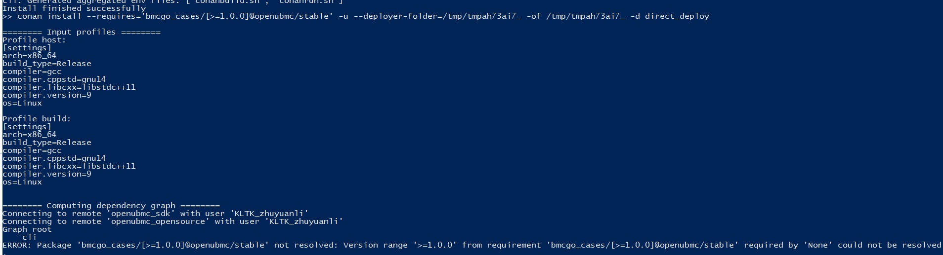 ERROR: Package 'bmcgo_cases/[>=1.0.0]@openubmc/stable' not resolved: Version range '[>=1.0.0]' from requirement 'bmcgo_cases/[>=1.0.0]@openubmc/stable' required by 'None' could not be resolved.