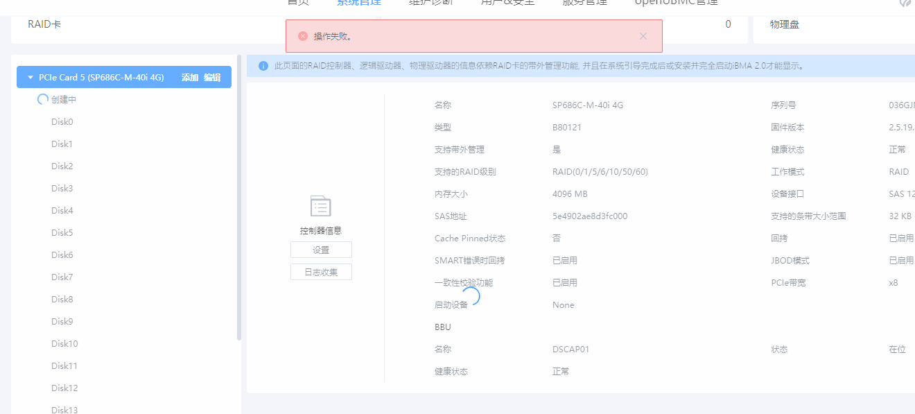 另外从一键收集日志可以看到BMC组Raid失败返回码如下: