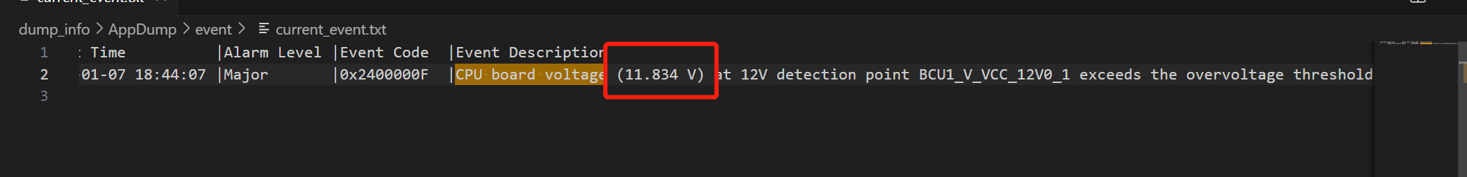 告警事件的描述文本 (如 “voltage (11.911 V)”)是由事件生成机制从底层寄存器或缓存中获取的,不会自动同步最新的模拟值 。