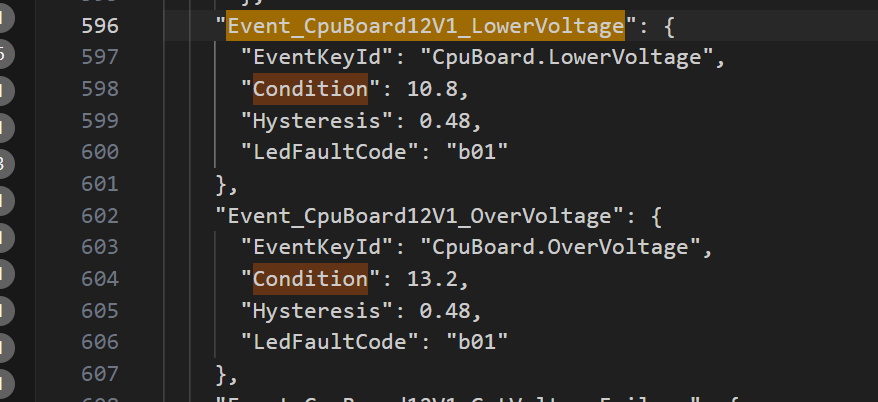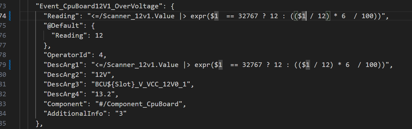 BCU_V_VCC_12V0_1 是用于构建事件描述的动态参数对象(见 KG:BCU_V_VCC_12V0_1 in Mappings.DescArgs)