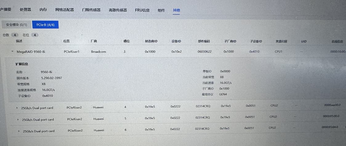storage 组件版本:已知 9560-8i 在 Storage 1.80以下版本工作正常,但1.80+存在显示和通信问题。建议升级至 1.80.131 或更高稳定版本 以修复已知兼容性问题。