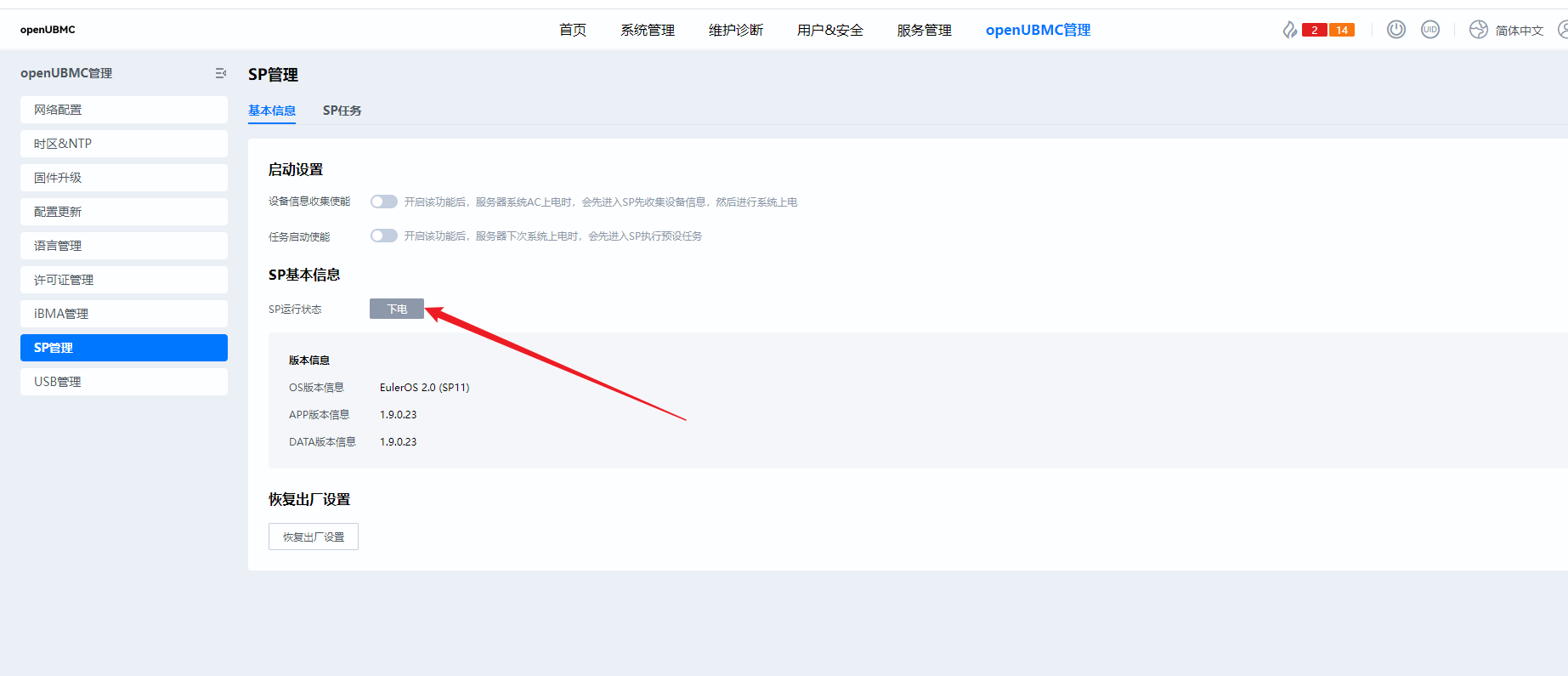 提供一下sp的版本呢,较低版本是sp可能没有适配bmc,无法和bmc交互,会导致bmc无法正确查询该状态。