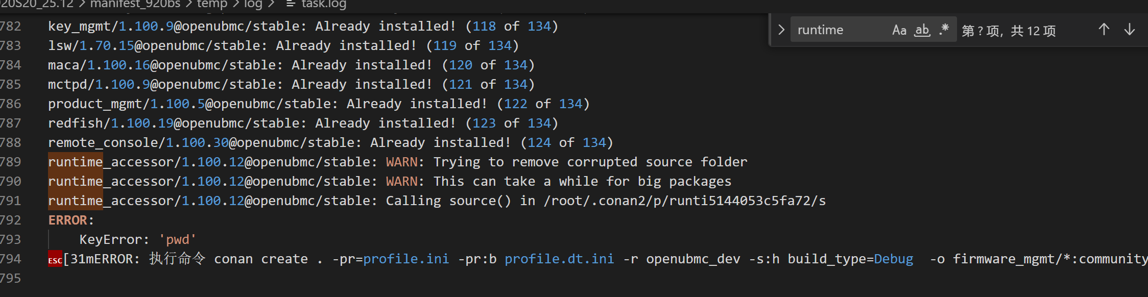 ret: 4357从日志中可见关键错误提示: