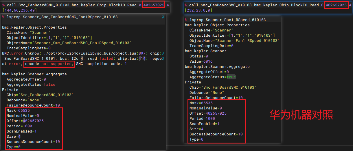 在配置风扇在位寄存器和转速寄存器时,遇到Accessor/Scanner获取值失败,失败信息为opcode不支持。但是操作Smc命令字直接读取对应偏移是可以正常读取的。