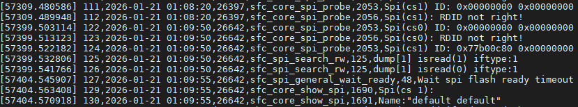 确认 sfc0_drv 是否完整支持当前 SPI Flash 芯片(如 Winbond W25Qxxx、Macronix MX25L 等),可通过设备 ID 读取验证。