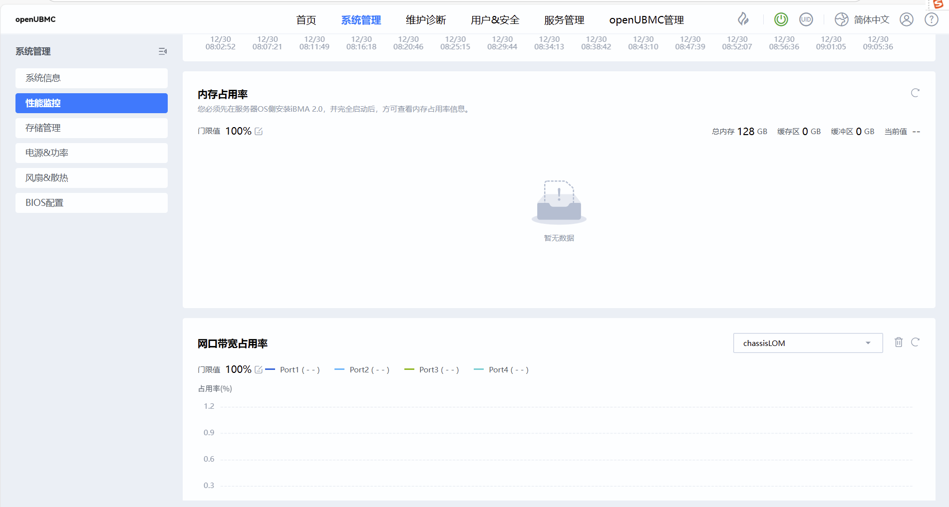 web上显示的内存占有率应该是读取 /bmc/kepler/Systems/1/Memory 资源对象的bmc.kepler.Systems.Memory.MemoryMetrics接口,AppDump/compute/mdb_info.log如下,发现BandwidthPercent为255,即为NULL。