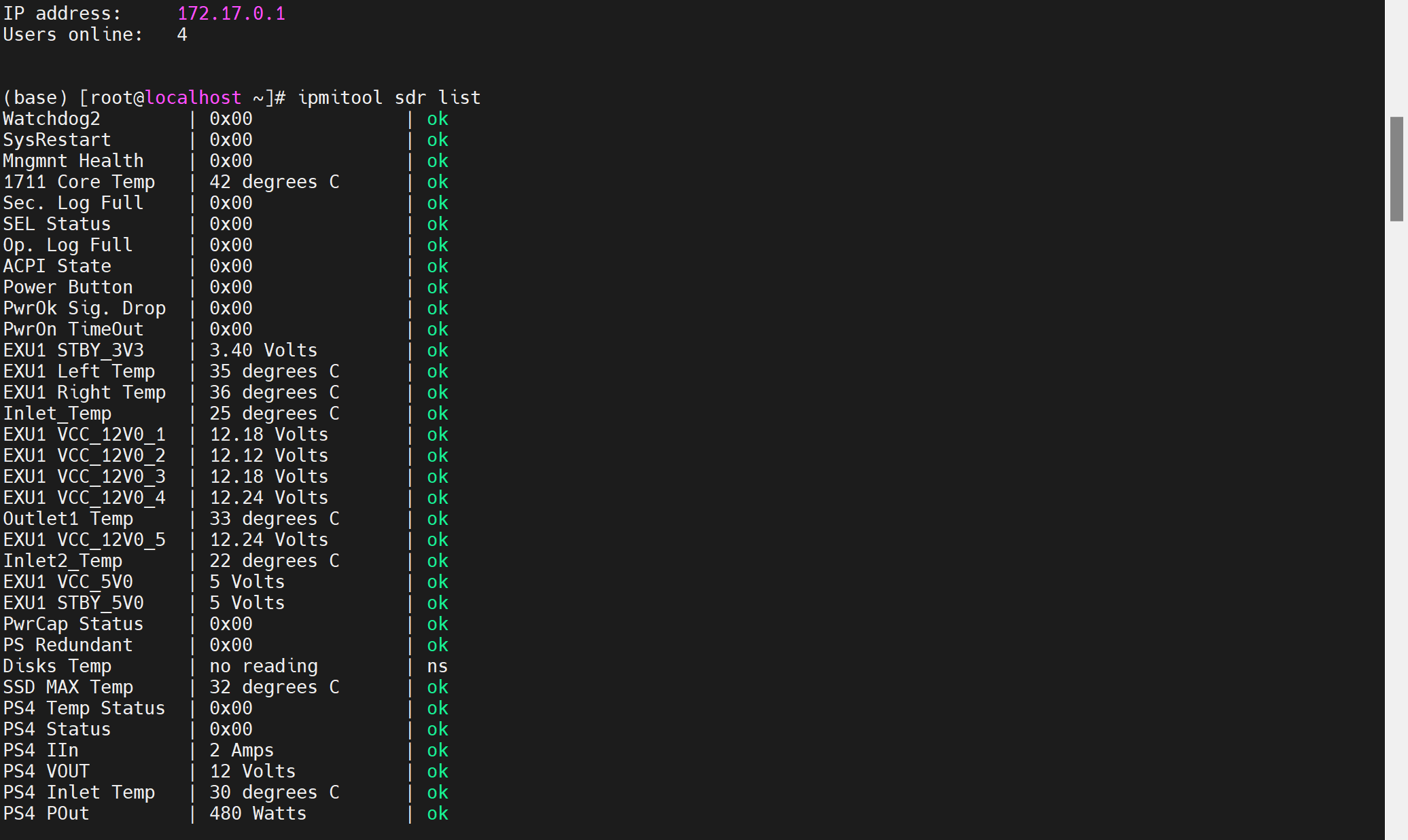 而 ipmitool sdr list 是通过 IPMI 协议 → SDR(Sensor Data Record) → BMC 内部转换逻辑 获取: