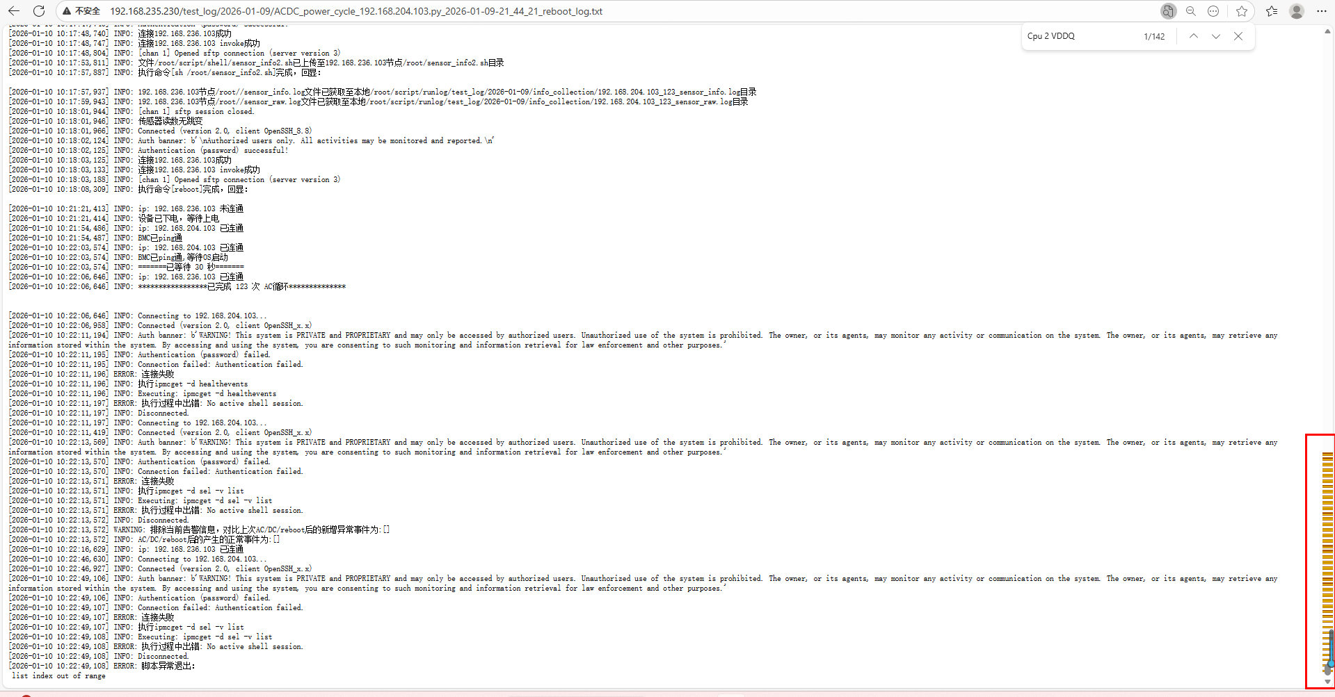 步骤1:执行reboot长稳结束后,手动检查环境日志(有CPU相关告警上报)步骤2:reboot长稳日志检查(有CPU相关告警上报)