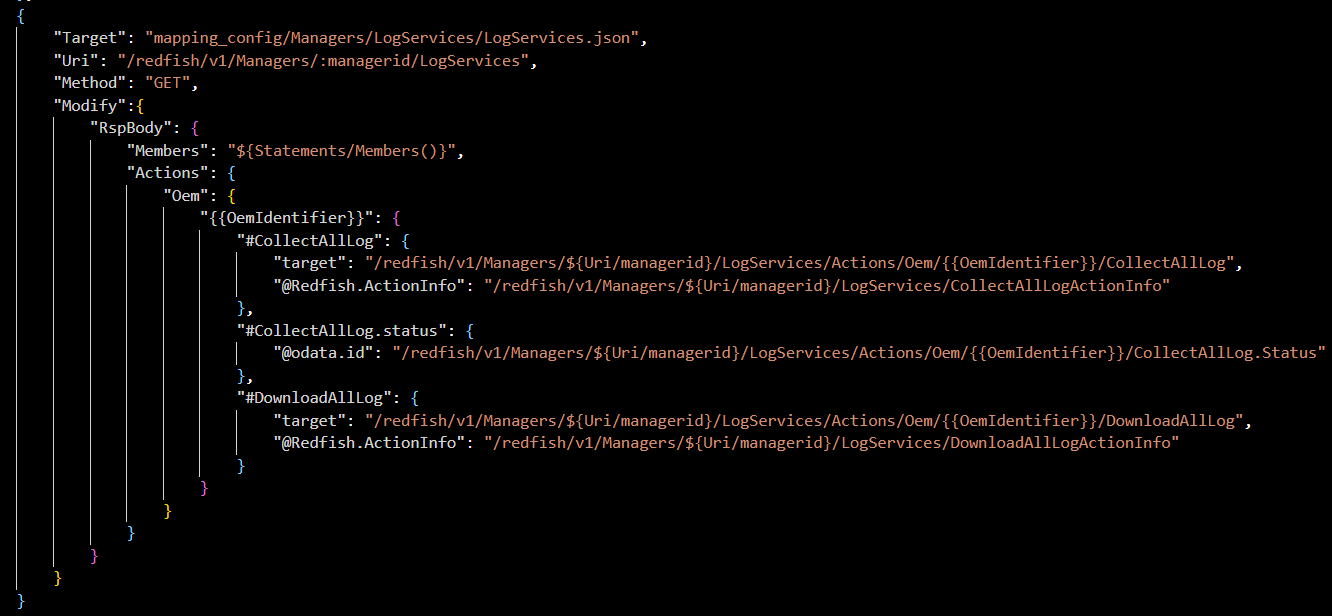 “@odata.id”: “/redfish/v1/Ma@odata.typeagers/${Uri/managerid}/LogServices/Actions/Oem/{{OemIdentifier}}/Colle@odata.typetAllLog.Status”,