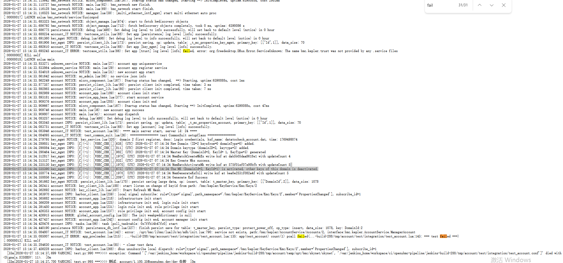 # 查看 framework.log 中 account 启动记录