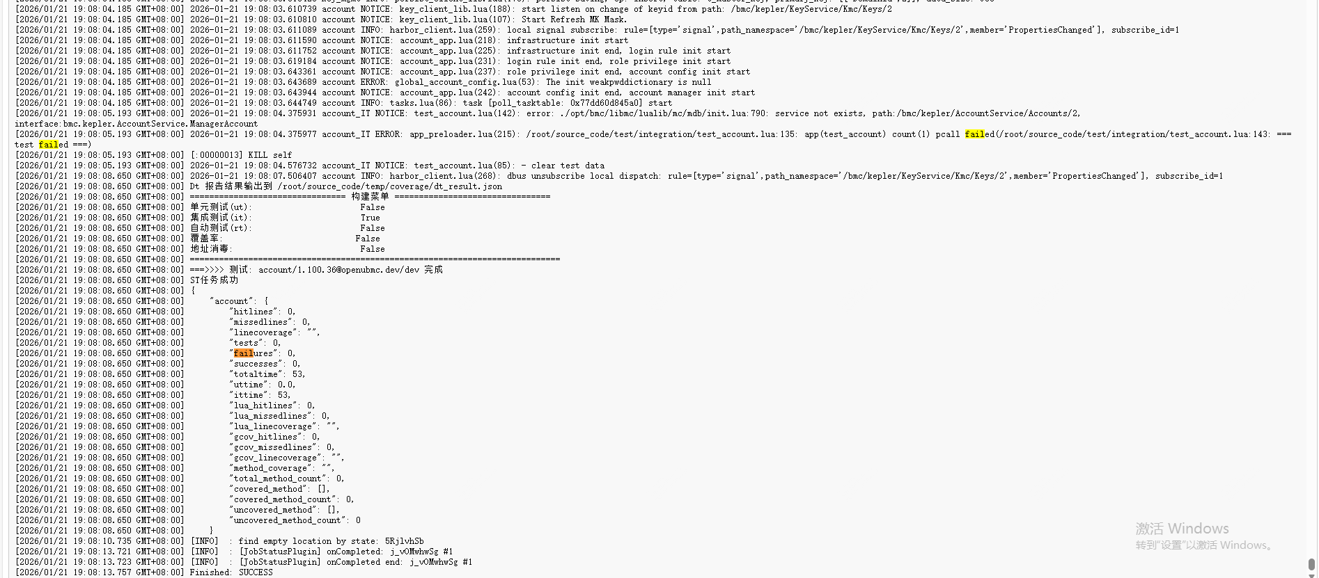 在进行代码上库时,account组件的本地集成测试(IT)失败,主要报错信息如下: