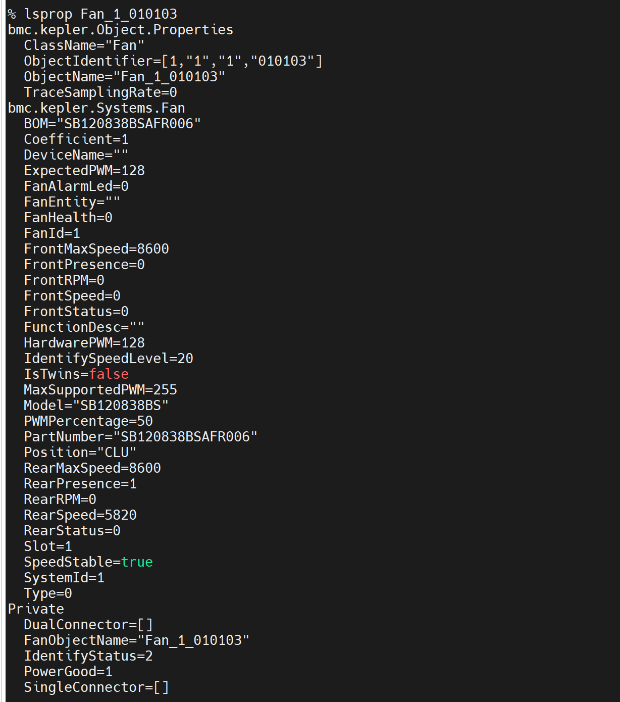 mdbctl setprop set Fan_5_010103 bmc.kepler.Systems.Fan ExpectedPWM 255