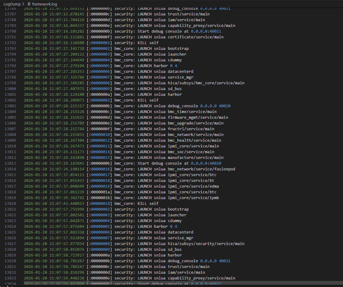 在 bmc_core 循环重启期间,其托管的服务(包括 Redfish 相关组件如 bmc.kepler.redfish)无法稳定加载。