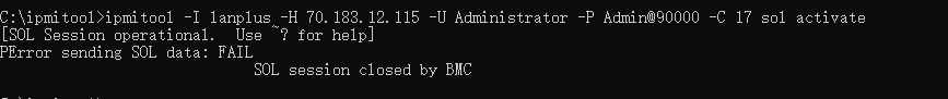 ipmi sol deactivate关闭sol,sol窗口会报错 Error sending SOL data: FAIL
