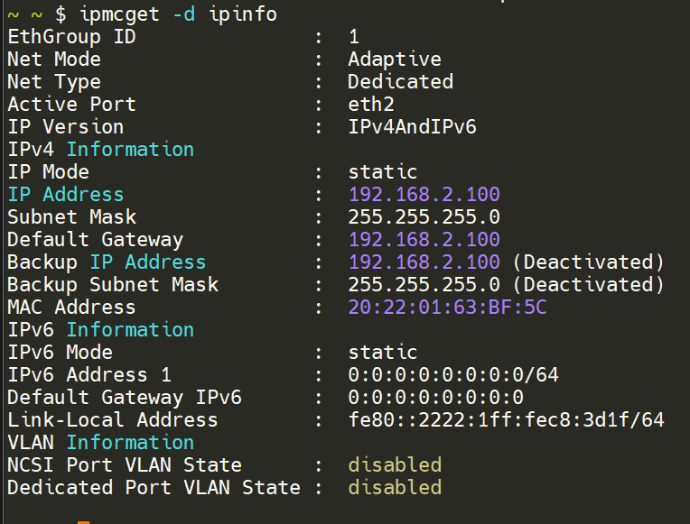 NCSI口不需要配置DedicatedPort_Eth2的配置项,可以使用cli命令查看NCSI是否为工作网口: