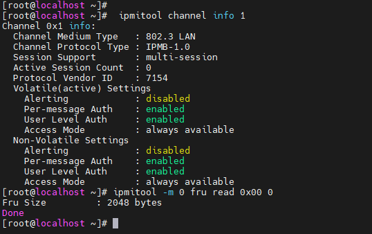 Channel Medium Type: 802.3 LAN这表示通道 1 是 LAN 通道,不是物理上的 IPMB 通道。您需要确认实际 IPMB 对应的通道号(通常是保留通道,如