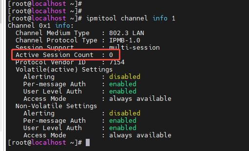 使用 ipmitool channel info 命令查看通道信息: