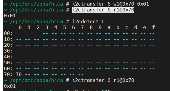 2、然后使用i2ctransfer 6 r1@0x70确认切换是否成功