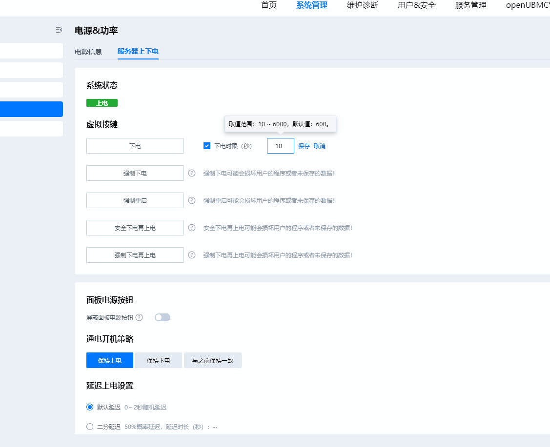openUBMChttps://10.0.6.110/UI/Static/#/navigate/power/control)。目的:大幅缩短系统预期完成下电的时间窗口,提高超时概率。