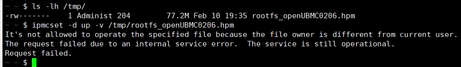 无法升级的问题,提示说了 文件属主不对, 执行下ls /tmp -lh 看下hpm包的属主 和权限。