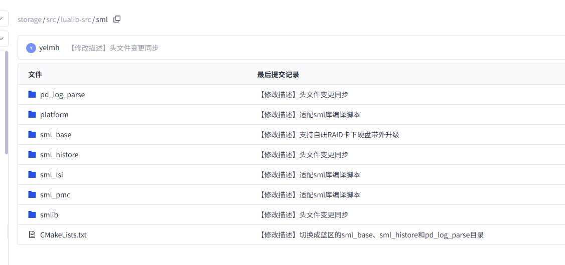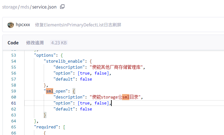 storage/src/lualib-src/sml,内含多个子模块(如 sml_lsi, sml_pmc, sml_base 等)。libsml_lsi.so 和其他相关库目前通过高可用组件或闭源依赖引入,为二进制形式(.so 文件)。service.json 中定义了两个关键选项:"sml_open": {