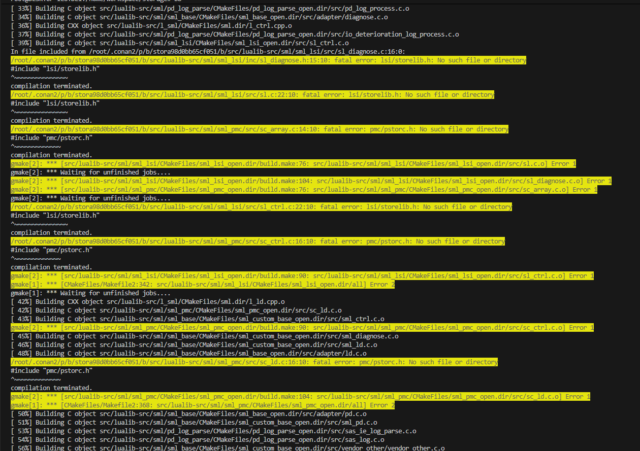 SML库依赖的底层厂商SDK头文件(如Broadcom/LSI、PMC)未在构建环境中提供。