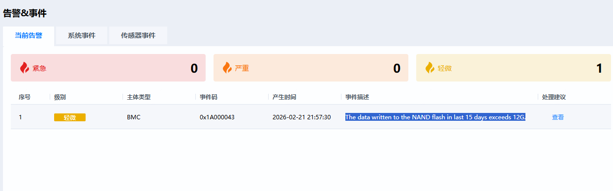 | 4 | 约15天后 | BMC触发轻微告警 0x1A000043 |