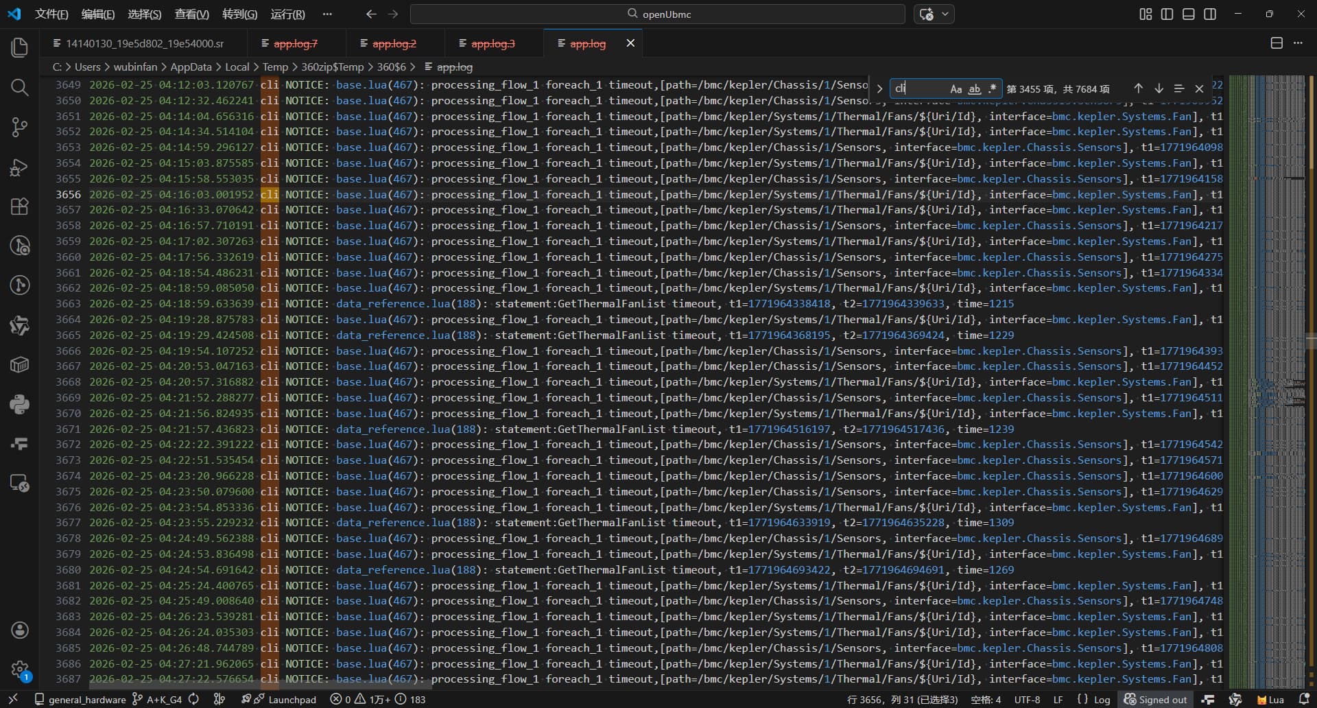 主要就是fan和sensor超时了,因为脚本就在一直查这个,日志附上